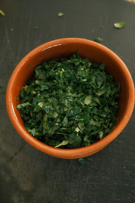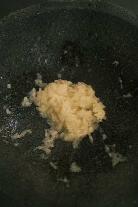 Grind the garlic into a paste, mince the cilantro, and slice the lemons so they’re easy to squeeze.