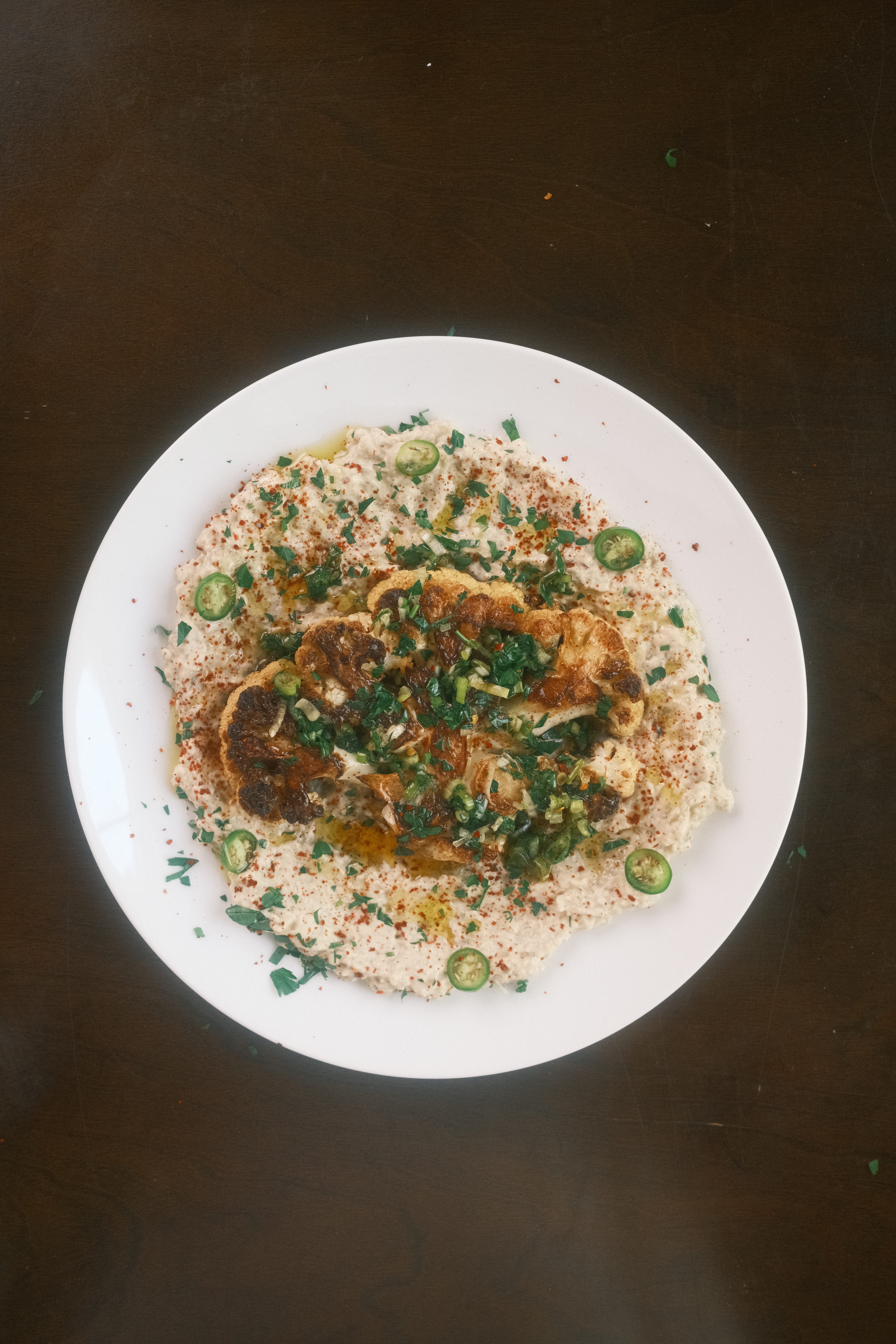 This is the kind of dish I would present to anyone who says they don’t like veggies or to eat vegetarian, I guarantee it’ll change their mind. What makes this work so well is understanding how textures and flavors play together. This is a well charred cauliflower with lots of crispy bits served over a creamy mutabal (eggplant dip). Add a bit of heat, some fresh herbs, and olive oil, you have yourself a beautifully simple and elegant dish.