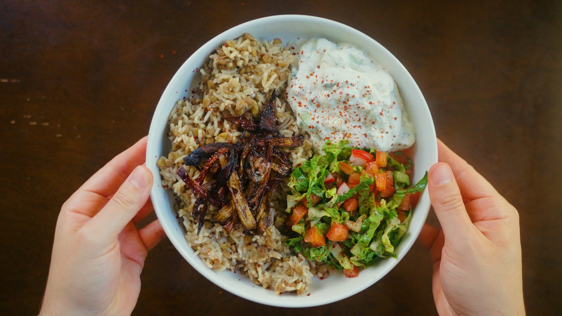 Palestinian Mujaddara with Crispy Caramelized Onions