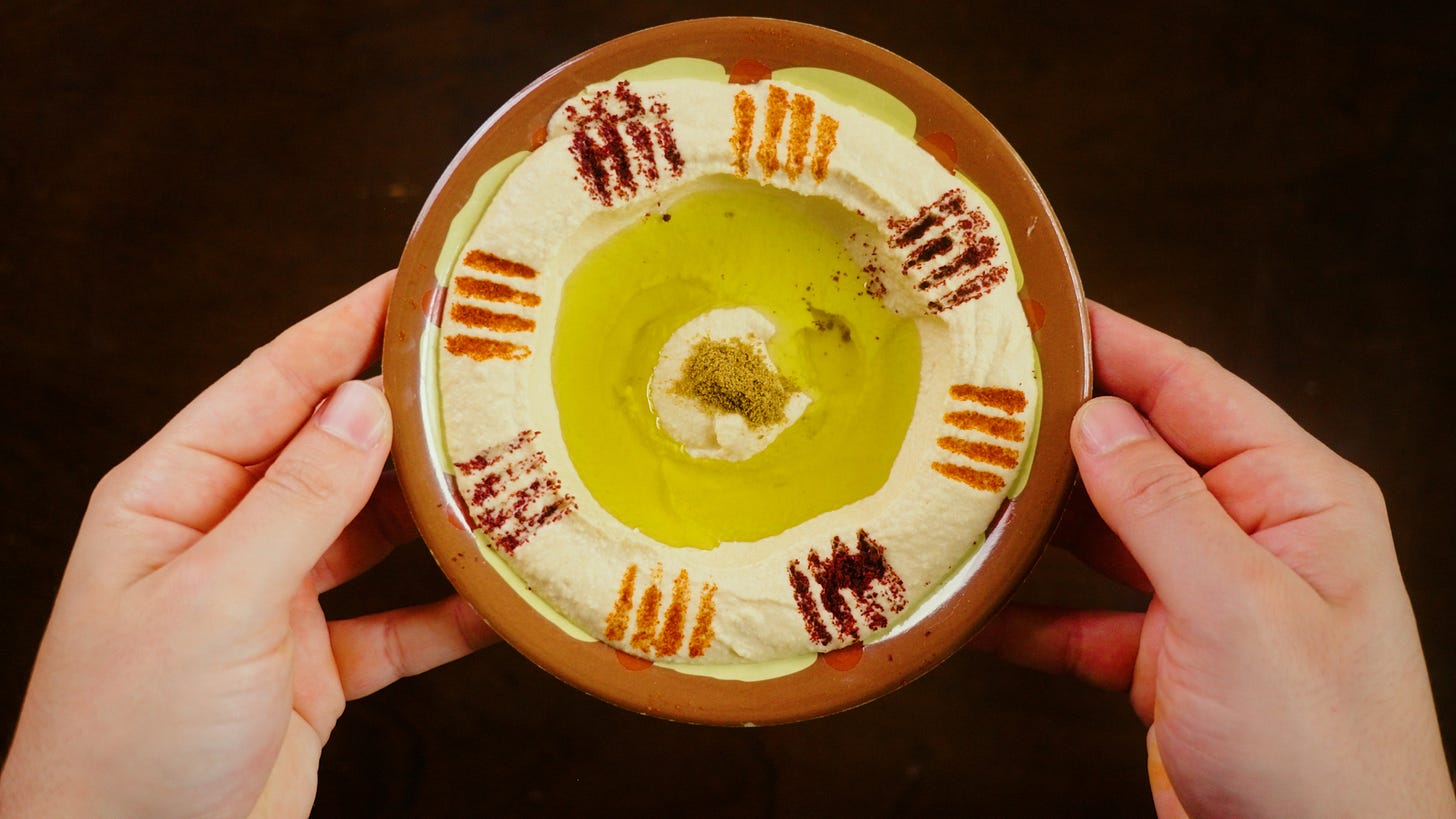 Hummus is arguably one of the most iconic dishes to come out of the Levant. It’s creamy, it’s got a touch of lemon and garlic, it’s filling, and it’s just one of several mezze dishes we have. In Arabic, hummus just means chickpeas. So sometimes when we say hummus we’re talking about the dip I’m sharing today and sometimes we’re talking about the chickpea itself - it really just depends on the context.